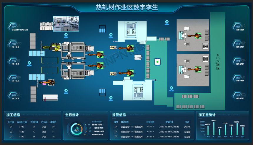 1、全流程透明化:每个环节、每台设备都在虚拟空间中得到展示,管理者无需亲临现场即可掌握生产状况。