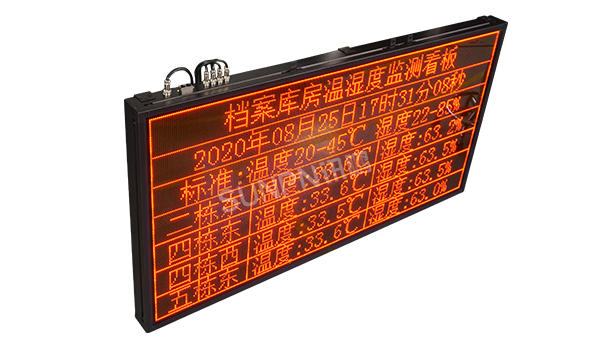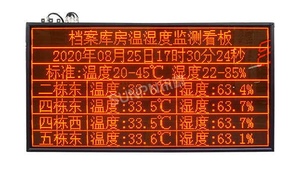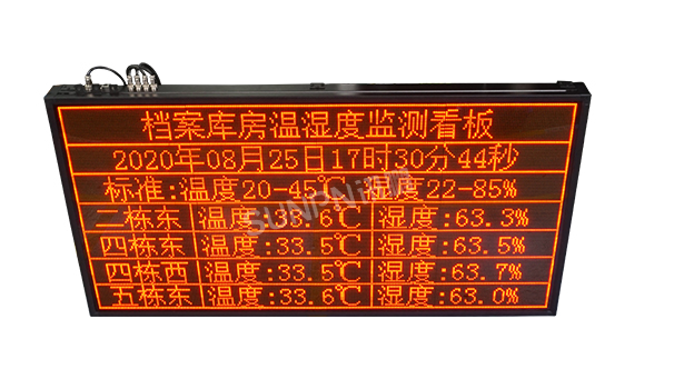 为了解决档案的不断损毁与长远利用的矛盾,需要将档案加以妥善保管,为档案库房构建理想的储存环境,以此最大限度地延长档案的寿命。讯鹏温湿度显示屏是实时监控室内各环境指标的可视化管理工具,它提供数据采集、数据分析与范围报警等功能。直观地显示当前环境监测下的温湿度数据,以便任何人都可以及时掌握管理现状和必要的情报,在发生问题时,可以快速被感知,相关人员能够快速制定并实施应对措施。