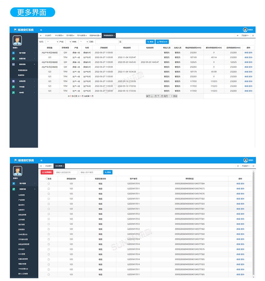 间、**班组长确认异常处理完成时间。并在软件后台报表里随时查看、查询。