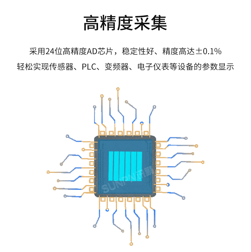 传感器PLC数据显示屏采用24位高精度采集芯片,具有稳定性好、精度高达±0.1%。系统中的过程信号通过变送器,将这些检测信号转换为统一的电压、电流信号,并将这些信号实时的传送至控制器,可轻松实现传感器、PLC、变频器、电子仪表等设备的参数显示。模拟量信息屏一般用于开关量控制的设备,机床,机器等。通过讯鹏协议、RS485通讯、PLC传感器把不同的物理量,如压力、流量、温度转换成模拟量4-20MA的电流或1-5V的电压,实时监控生产设备状态、及时发现问题并实施应对措施。