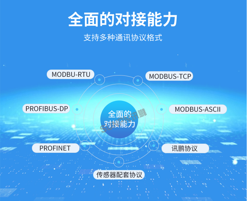 工业LED参数显示屏具有多种通讯方式,全面的对接能力支持多种通讯协议格式,MODBU-RTU、MODBUS-TCP、PROFIBUS-DP、MODBUS-ASClI、PROFINET、讯鹏协议、传感器配套协议等多种通讯方式。