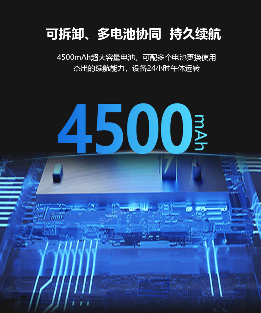 讯鹏5寸手持轻便式PDA配备4500mAh超大容量电池,可配多个电池更换使用杰出的续航能力,设备24小时午休运转。可以支持一整天甚至更长时间的工作。这对于需要长时间使用的场景非常重要,如物流配送、采样调查等,用户无需频繁充电,提高了设备的使用便利性。