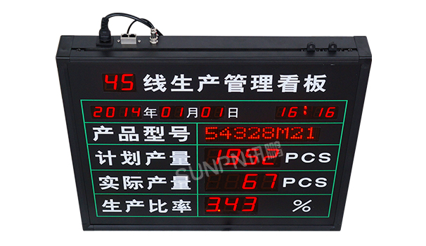 生产管理电子看板是专门为生产型企业而研发的一款硬件软件一体的产品,它用于展示当天的计划生产数据、实时生产数据、实际生产数据、差异数据、不良品量、达成率等多种参数,可根据需要来定制。工业生产管理LED看板系统的诞生有利于提高企业的管理水平、实现降低企业的劳动力使用成本、还可激发岗位员工的生产积极性等从而使生产数据提高,让企业获得更大的利润提升空间。